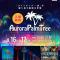 泉南市のSENNAN LONG PARKにて、ヤシの木が万博カラーでライトアップされる幻想的な...